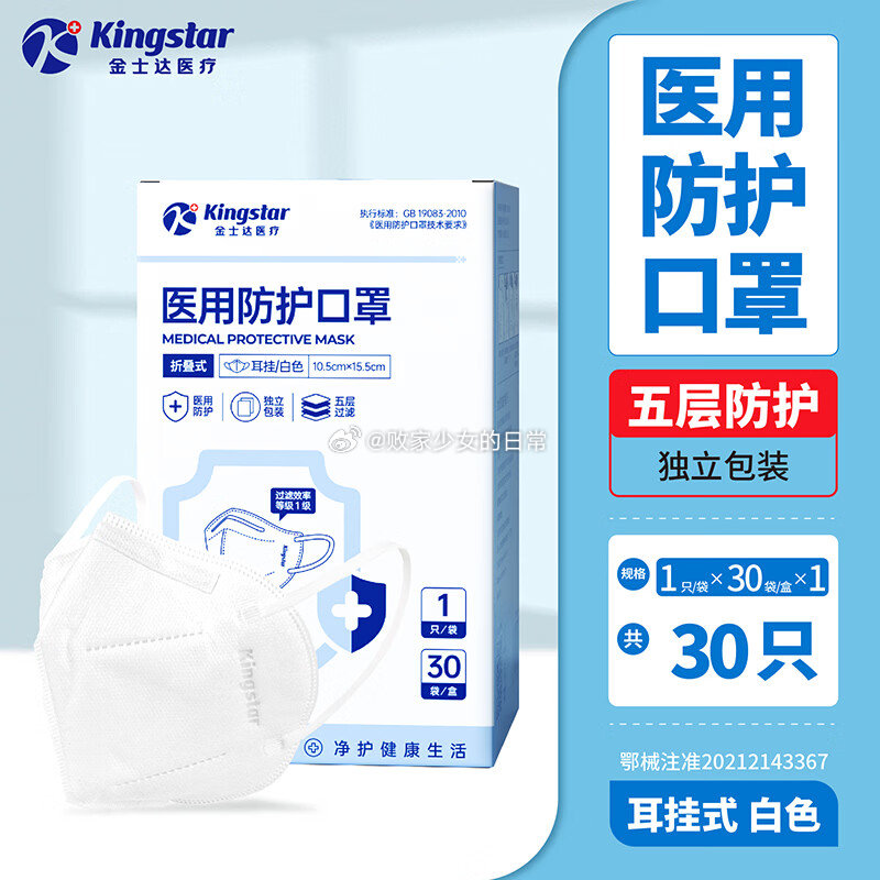 1️⃣金士达 N95级成人医用防护口罩 耳挂式30只/盒*1盒: