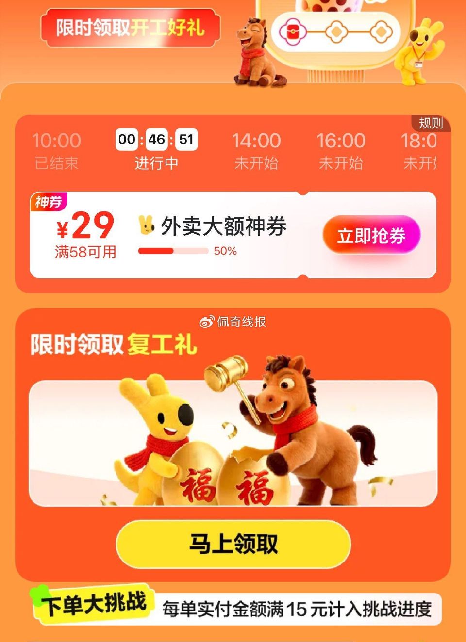 外卖底部也可以领取