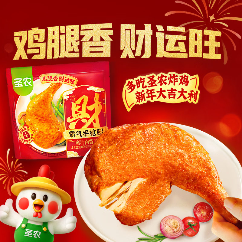 JD【44.98/拍3件】圣农.蜜汁卤香手枪腿180g,买3件加赠同款3袋(订单内会有赠品显示的),总共到手6袋,折7.49元/袋,需叠加页面5元首购金,非plus会员不包邮