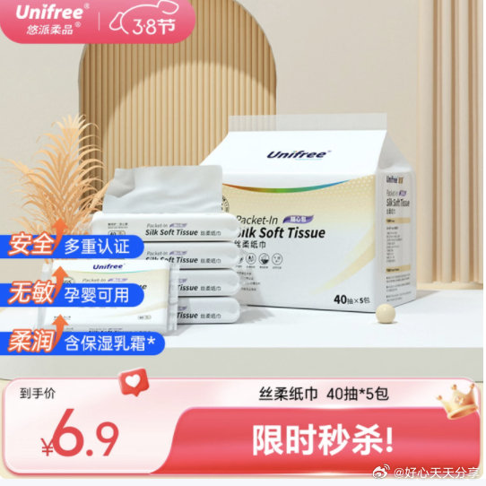 unifree婴童乳霜纸3层40抽*5包【1.9】