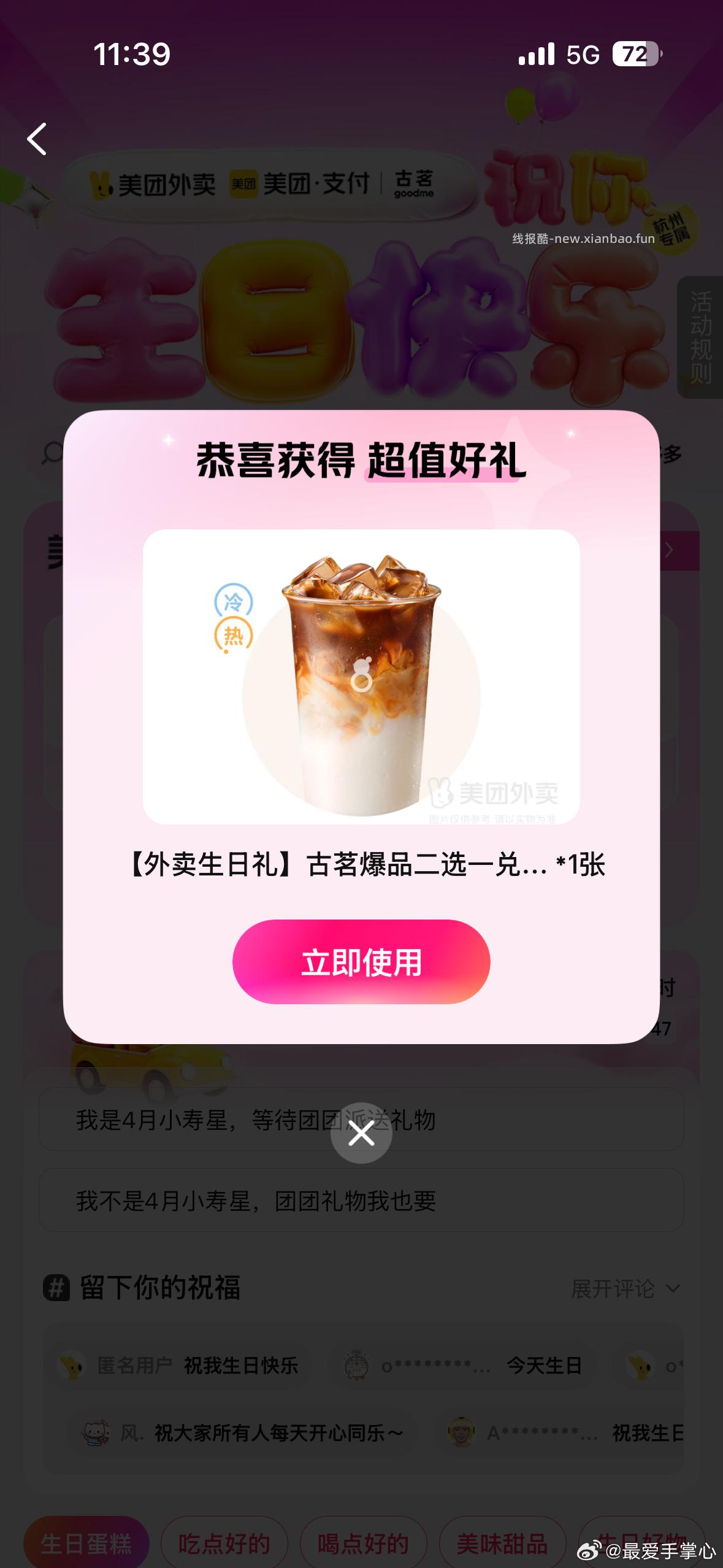古茗换2张自取