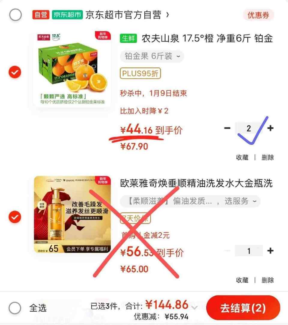 脐橙实付95.1亓,plus仅88亓