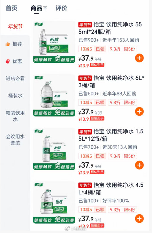 3、淘宝闪购搜:怡宝官方旗舰店或百岁山官方旗舰店或农夫山泉旗舰店