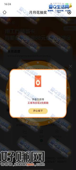 工行借记卡月月花抽奖 赢最高88元微信立减金